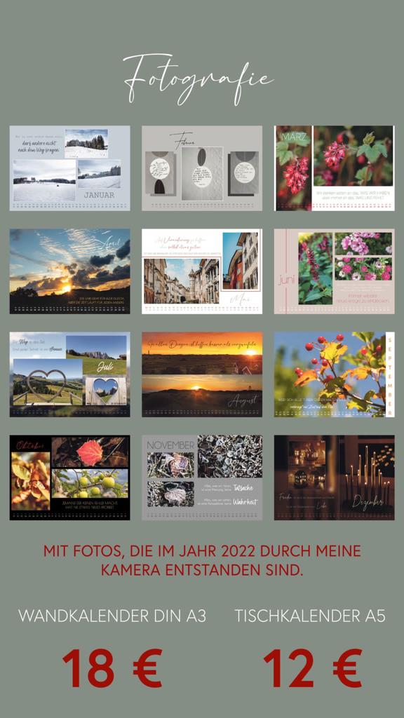 Die Kalender sind von hoher Qualität, liebevoll und professionell gestaltet, wunderschön mit großartigen Fotografien und sehr schönen Kalendersprüchen. So etwas Besonderes findet man sicherlich in keinem Laden.