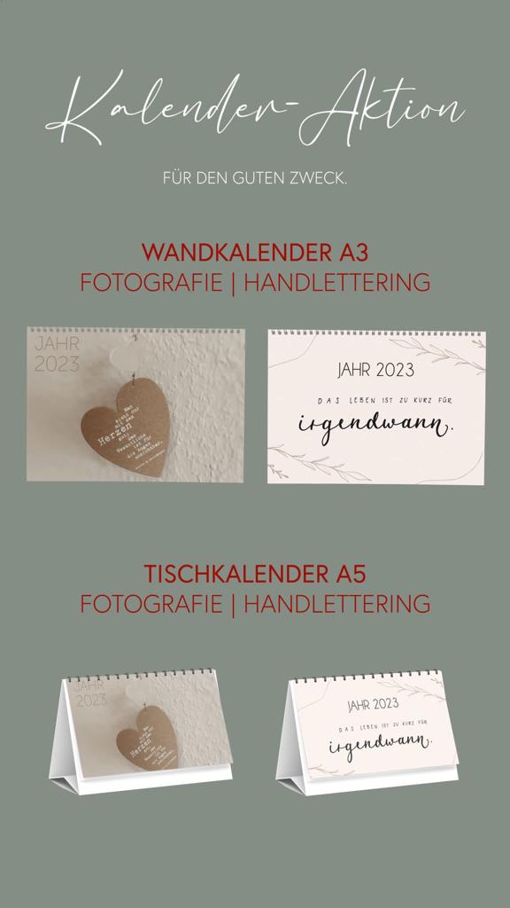 Kristin hat im letzten Jahr einen Fotowandkalender und einen Handletteringwandkalender aufwändig selbst gestaltet mit eigenen Fotografien und eigenem Design und diese für einen guten Zweck verkauft. 50% der Verkaufserlöse (700 €) wurden von ihr an die Initiative Sternenlicht gespendet.
